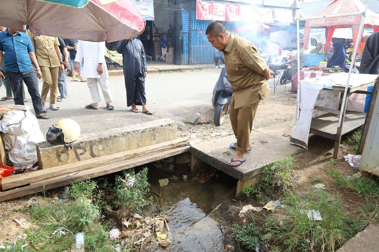 Bupati Irwan menyoroti dua hal penting selama inspeksi, yaitu kondisi drainase pasar yang mengalami pendangkalan akibat sedimentasi dan kondisi pipa Perusahaan Daerah Air Minum (PDAM) yang kurang rapi, Menurutnya, drainase yang dangkal dapat menyebabkan genangan air dan mengganggu aktivitas pasar .