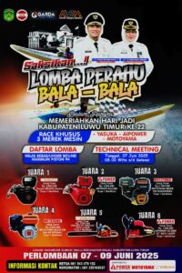 Luwu Timur, Kutipnusantara.com — Ajang balap perahu tradisional bertajuk Race Bala-Bala Luwu Timur siap digelar di Anjungan Sungai Malili pada tanggal 7 hingga