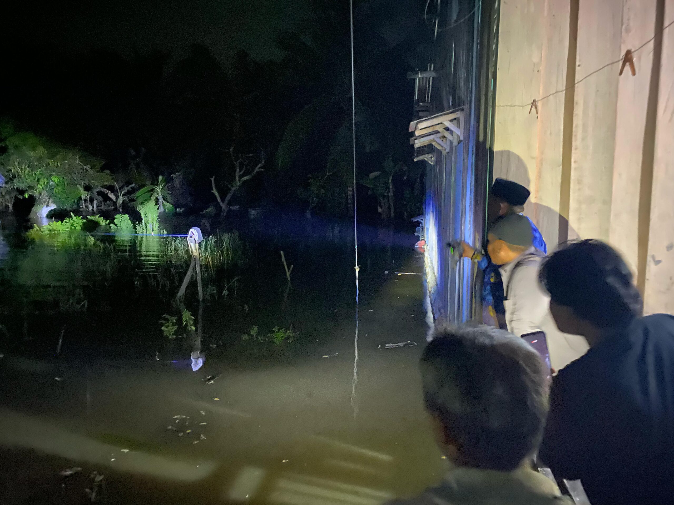 Setelah menyampaikan belasungkawa, H. Irwan Bahcri Syam langsung meninjau kondisi banjir di daerah Kalaena, Kecamatan Wotu, yang airnya sudah mulai merendam halaman rumah warga.