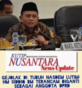 Setelah resmi diberhentikan dari jabatannya sebagai Wakil Ketua I DPRD Lutim, HM. Siddiq BM, kader senior Partai NasDem, disebut-sebut berada di ambang Pergantian Antar Waktu (PAW) sebagai anggota dewan.