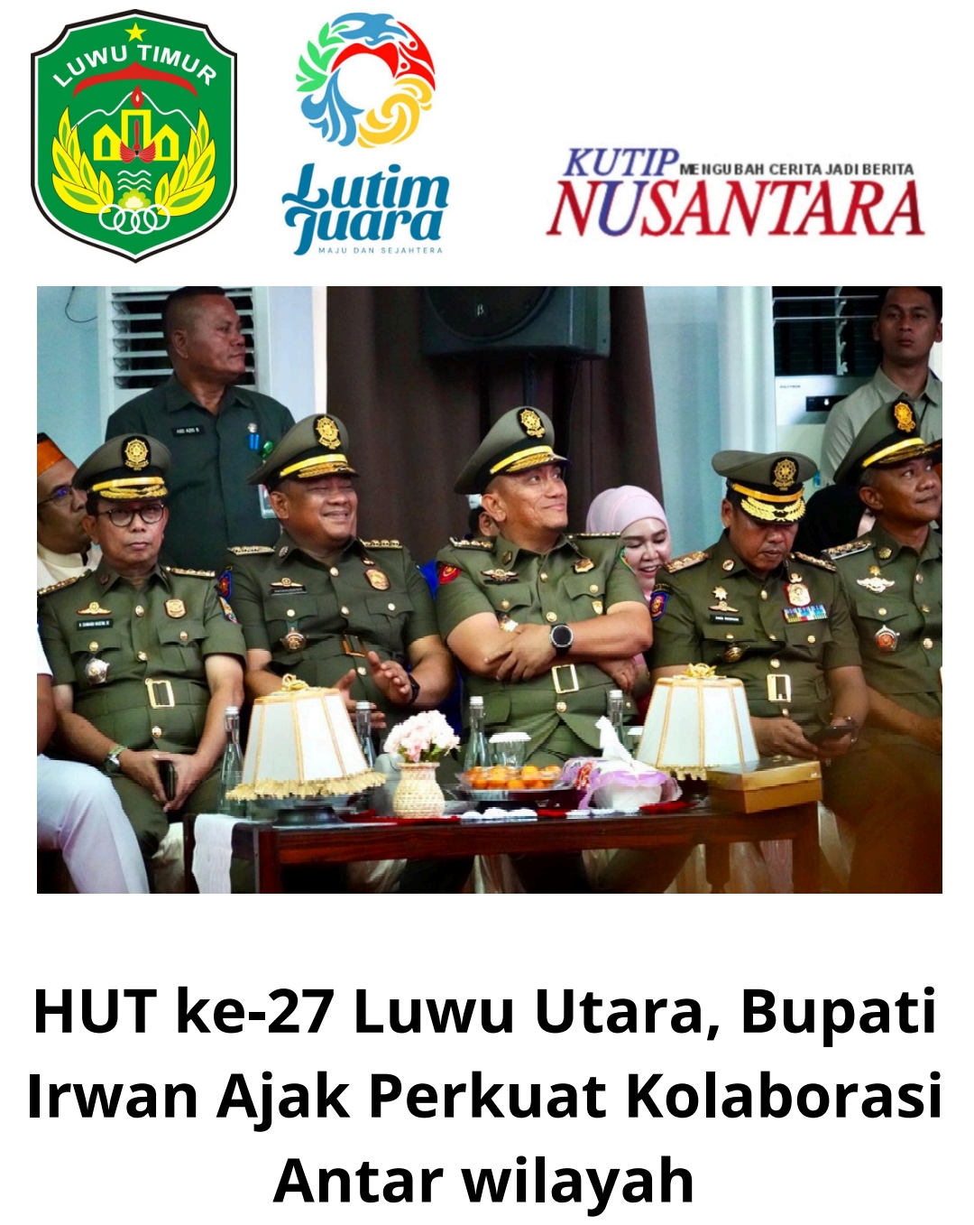 KutipNusantara.com — Bupati Luwu Timur, Irwan Bachri Syam, menghadiri Rapat Paripurna DPRD dalam rangka peringatan Hari Jadi ke-XXVII Kabupaten Luwu Utara, bertempat di Ruang Rapat paripurna DPRD Luwu Utara, Senin (27/4/2026).