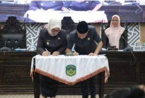 Dokumen Ranwal RPJMD ini akhirnya ditandatangani oleh Wakil Bupati Luwu Timur – Dra Hj. Puspawati Husler dan Wakil Ketua I DPRD Lutim- HM. Siddiq, sebagai wujud kesepahaman bersama antara eksekutif dan legislatif.