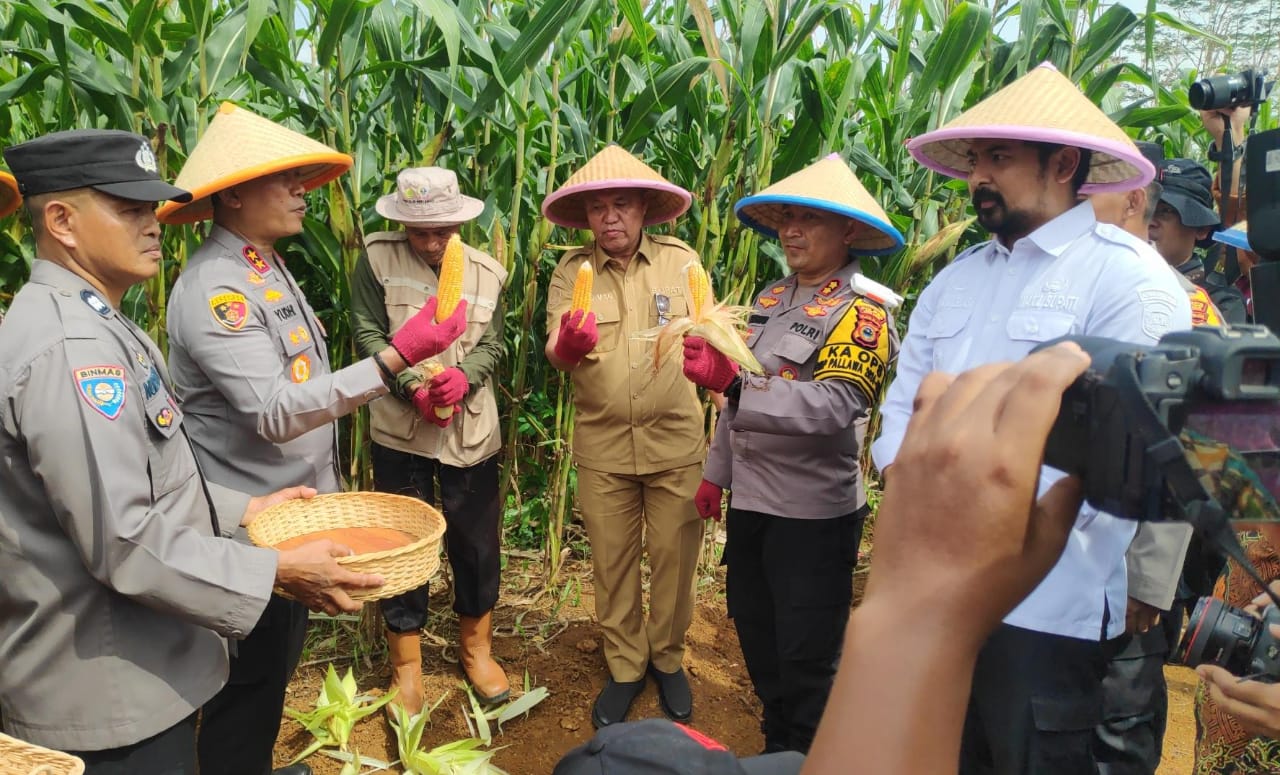 Kapolda Sulsel beserta rombongan meninjau lokasi dan melakukan panen jagung perdana.