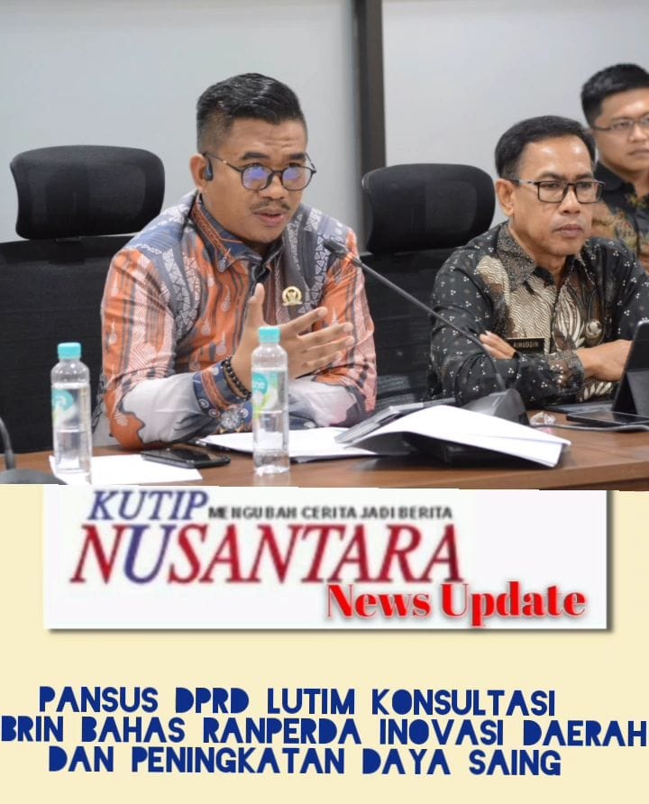 Luwu Timur, KUTIPNUSANTARA.COM — Panitia Khusus (Pansus) DPRD Kabupaten Luwu Timur  melakukan kunjungan kerja ke kantor Badan Riset dan Inovasi Nasional (BRIN) di Jakarta. Kunjungan ini dalam rangka konsultasi penyusunan Rancangan Peraturan Daerah (Ranperda) tentang Inovasi Daerah sebagai upaya memperkuat ekosistem riset dan inovasi di Luwu Timur. pada Selasa 27 mei 2025