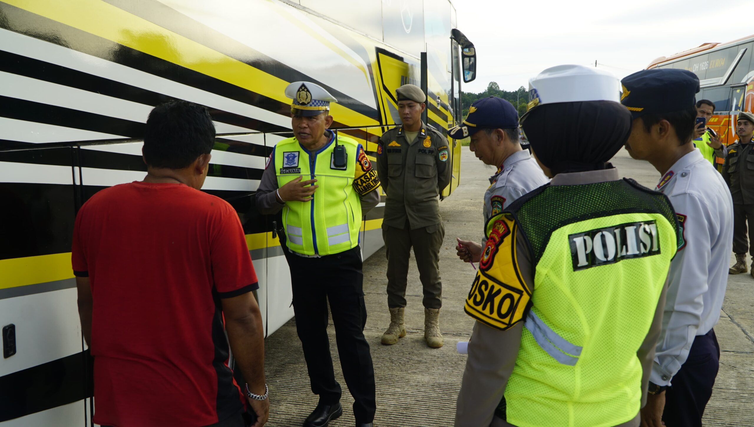 Kegiatan ini dipimpin langsung oleh Kasat Lantas Polres Luwu Timur, Iptu  Agusnawan, didampingi Kasat Narkoba Polres Luwu Timur, AKP Nasruddin. Melakukan Pemeriksaan seluruh  armada bus yang akan beroperasi, mulai dari sistem pengereman, kondisi ban, lampu, hingga kelengkapan administrasi dan keselamatan kendaraan.