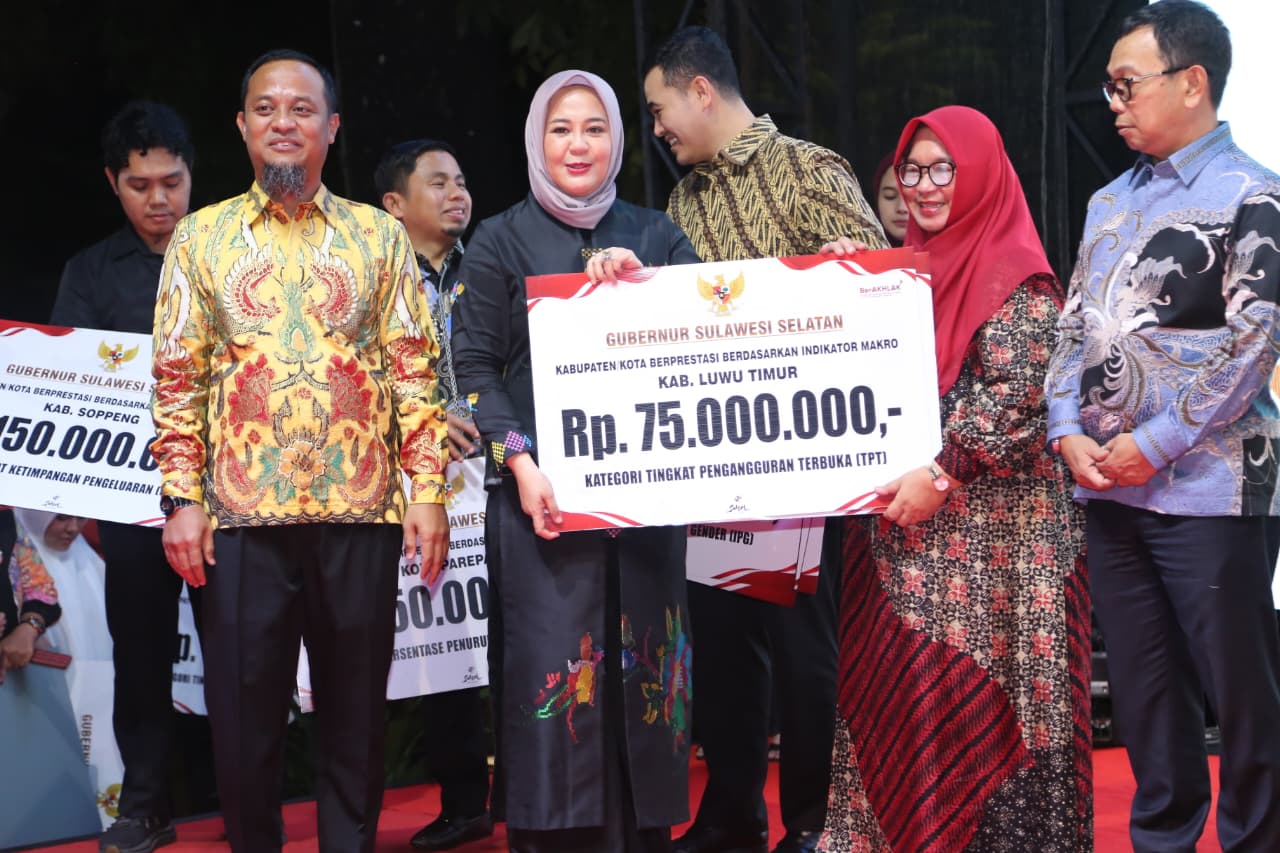 Penghargaan diserahkan langsung oleh Wakil Gubernur Sulawesi Selatan, Fatmawati Rusdi, didampingi Gubernur Sulawesi Selatan, Andi Sudirman Sulaiman, dan diterima Wakil Bupati Luwu Timur, Hj. Puspawati Husler.