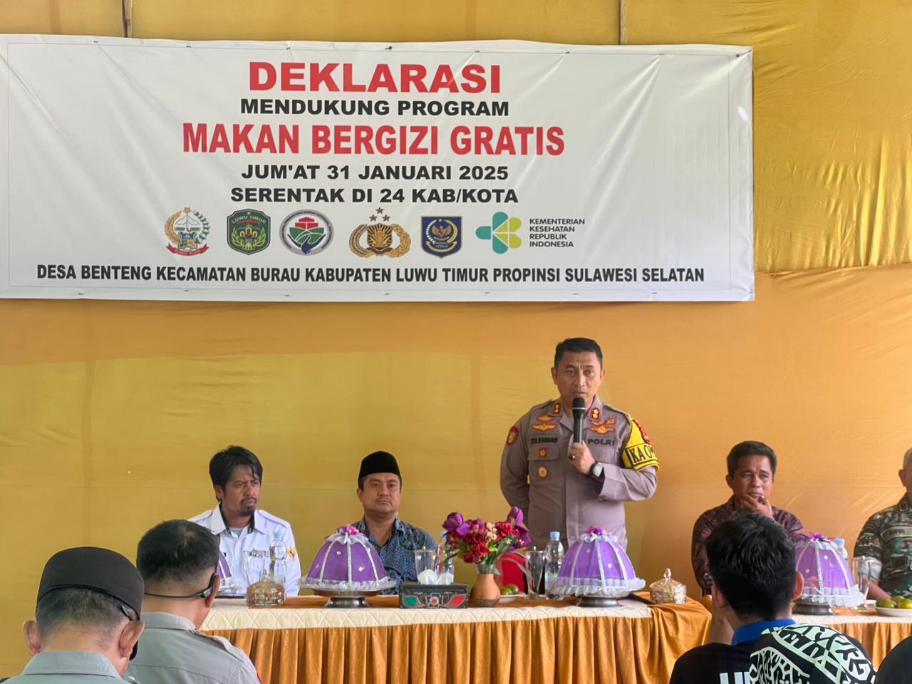 Luwu Timur, Kutipnusantara.com – Dalam upaya mendukung kesehatan dan gizi anak-anak, Polres Luwu Timur bersama Asosiasi Kepala Desa Seluruh Indonesia (APDESI) Kabupaten Luwu Timur melaksanakan Program Makan Bergizi Gratis (MBG) di SDN No 117 Benteng, Desa Benteng, Kecamatan Burau 31 Januari 2025.