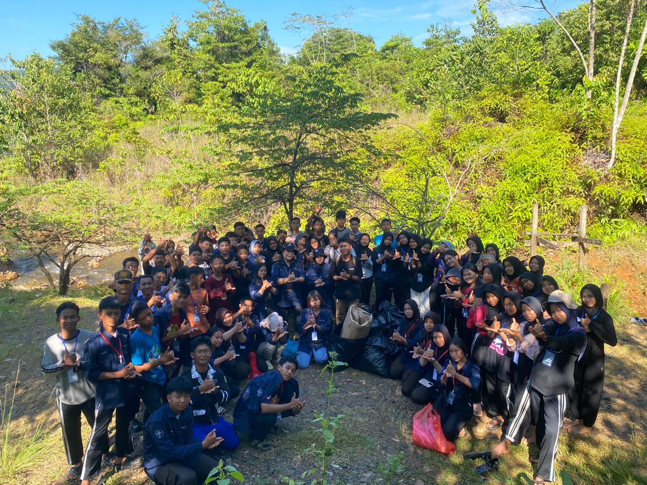 Tak hanya menerima berbagai materi tentang dasar-dasar kepramukaan, kepemimpinan, dan tanggung jawab sosial, para peserta juga diajak turun langsung melakukan aksi nyata melalui kegiatan bersih-bersih di sepanjang Sungai Trans, salah satu lokasi wisata alam yang ramai dikunjungi masyarakat sekitar.