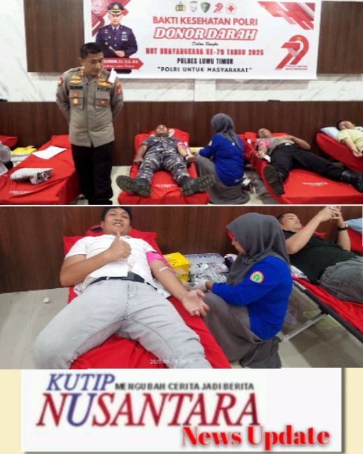 Luwu Timur, KUTIPNUSANTARA.COM — Menyambut Hari Bhayangkara ke-79, Polres Luwu Timur menggelar kegiatan bakti kesehatan berupa donor darah, Rabu, 18 Juni 2025.