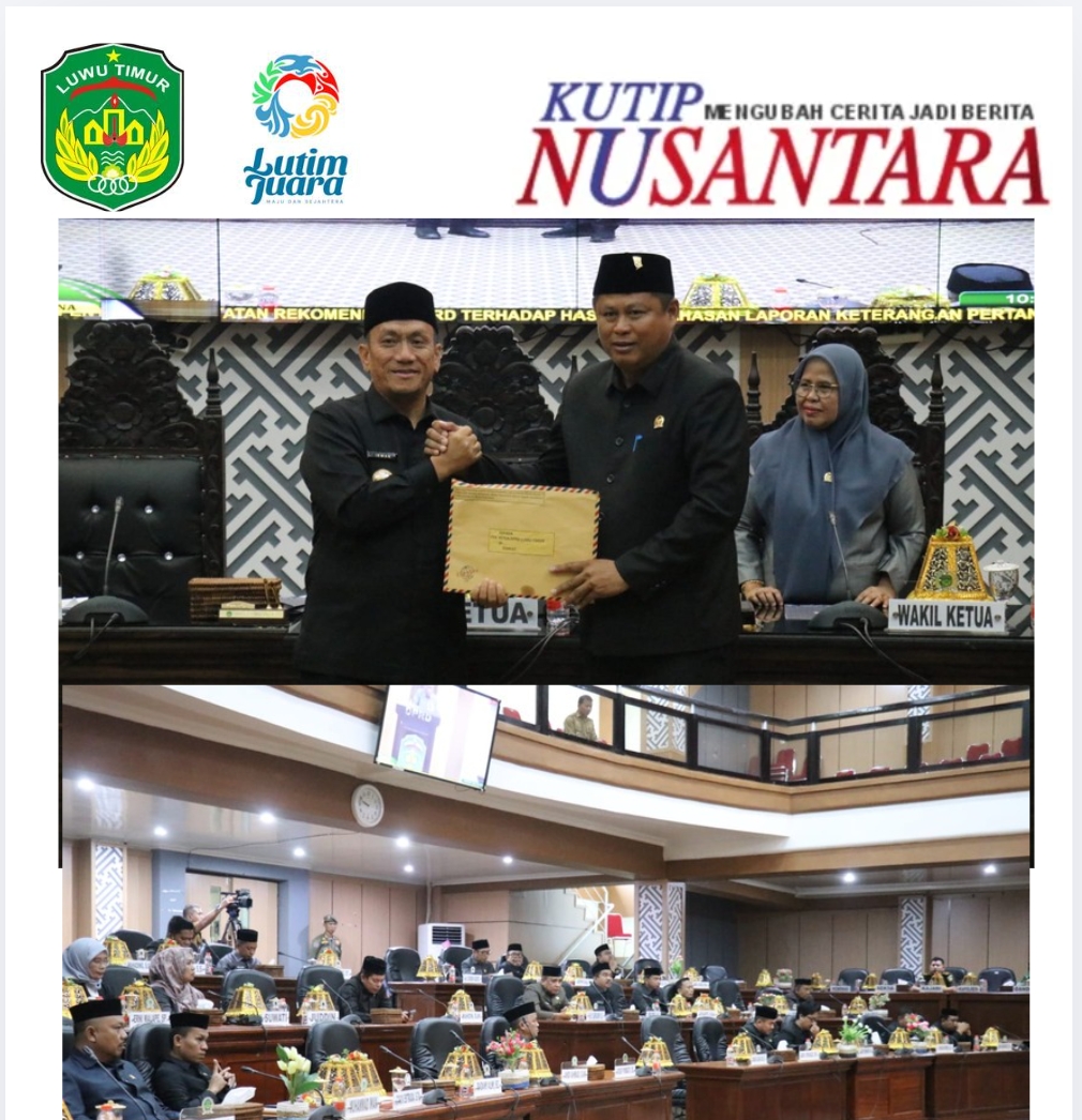 KutipNusantara.com — Bupati Luwu Timur, Irwan Bachri Syam, didampingi Wakil Bupati, Hj. Puspawati Husler, menyerahkan satu buah Rancangan Peraturan Daerah (Ranperda) tentang Perubahan Atas Perda Nomor 3 Tahun 2023 kepada Ketua DPRD Luwu Timur, Ober Datte, dalam Rapat Paripurna yang digelar Selasa (28/04/2026).