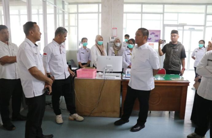 Dalam kunjungan tersebut, Bupati meninjau berbagai fasilitas rumah sakit, mulai dari loket pendaftaran, loket pelayanan BPJS, sejumlah Poli, ruang cuci darah, laboratorium, hingga kamar operasi. Selain itu, ia juga menyapa pasien yang sedang mengantri dan mendengarkan langsung keluhan mereka.