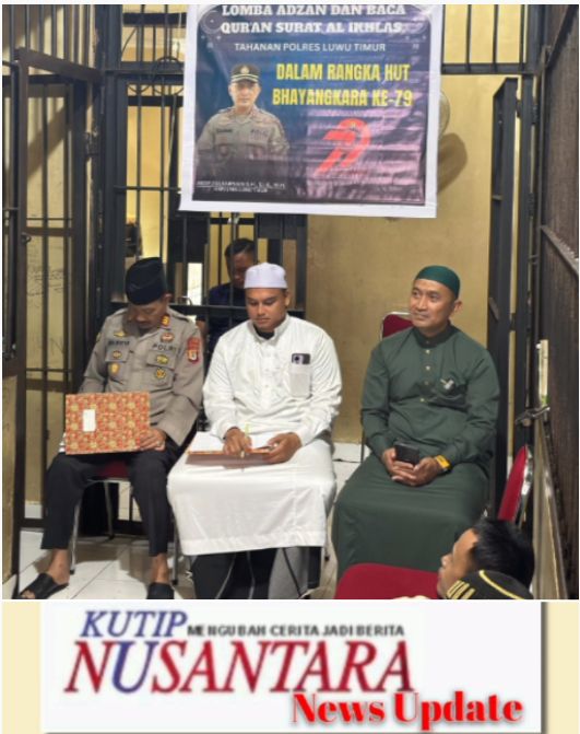 Dalam rangka memperingati Hari Bhayangkara ke-79, Polres Luwu Timur menggelar lomba adzan dan membaca ayat suci Al-Qur’an yang melibatkan para tahanan beragama Islam.