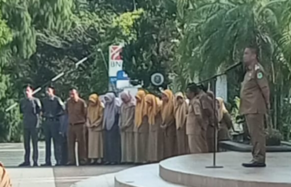 Momen ini menjadi perhatian seluruh peserta apel, Puluhan ASN pria dan wanita tampak berdiri di depan barisan, menerima teguran langsung dari Bupati Irwan Bahcri Syam. Ia menegaskan bahwa kedisiplinan merupakan pondasi utama dalam menjalankan tugas sebagai pelayan masyarakat.