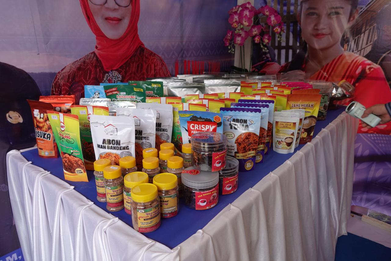 Sejumlah produk khas dipamerkan, mulai dari olahan ikan berbentuk abon, mie sagu, lada Towuti, terasi Malili, teh rosela, hingga keripik nangka, cobekan, kain tenun, kerajinan tangan, dan produk kreatif lainnya. Semua produk tersebut dikemas menarik dan telah dilengkapi logo PKK sebagai identitas resmi.
